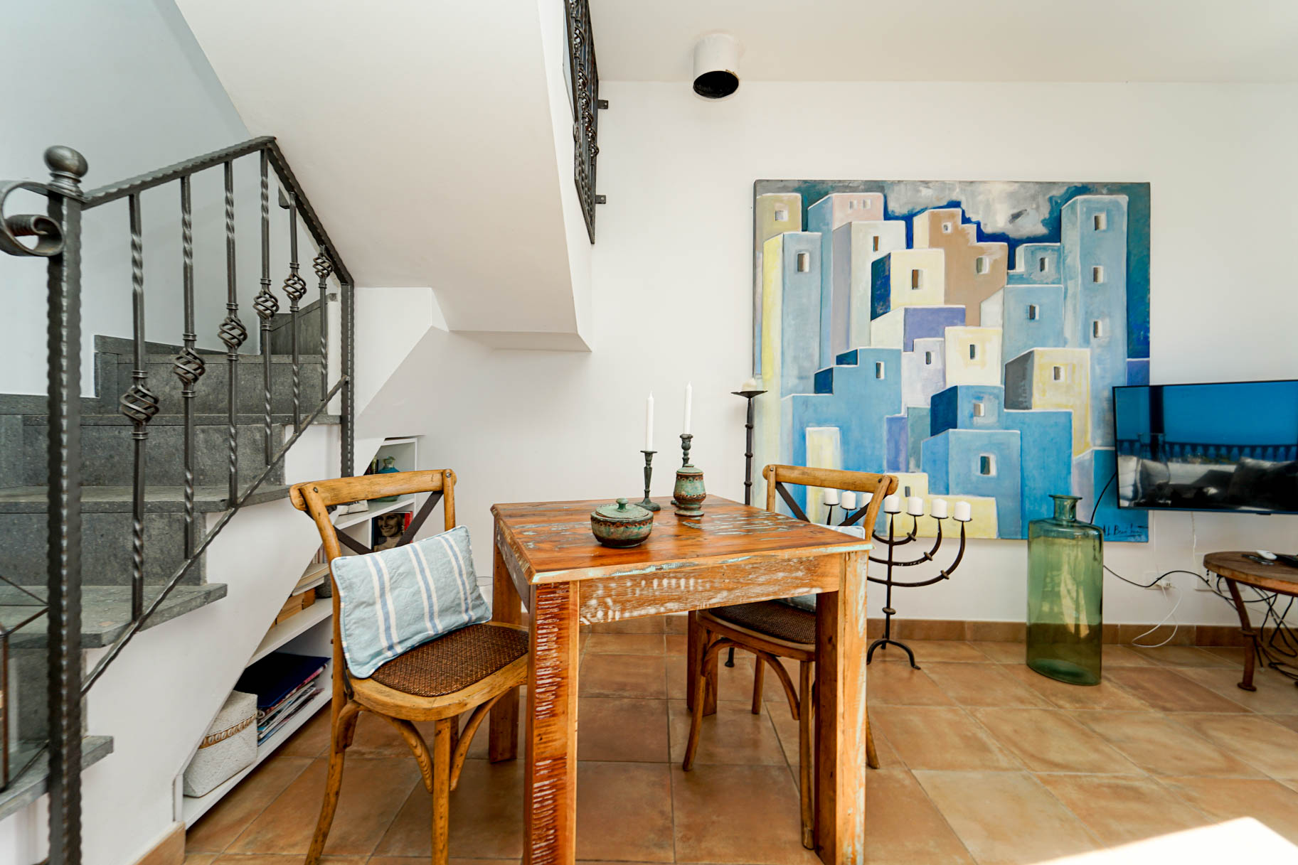 A diferencia de otras zonas más concurridas, aquí predomina la calma. El pueblo ofrece un entorno acogedor, con casas blancas decoradas en tonos pastel y callejuelas llenas de color y encanto. Es el lugar perfecto para quienes buscan tranquilidad, calidad de vida y belleza natural.